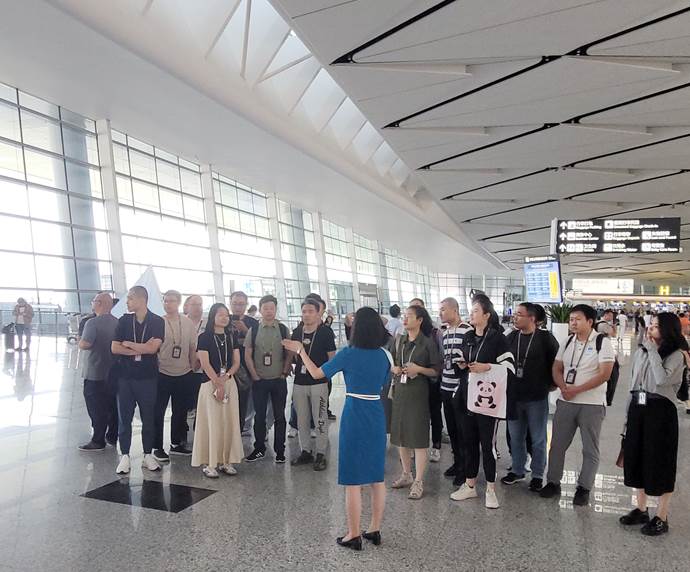 在天府机场工作人员的引导和讲解下,MBA同学们还实地走访了天府机场隔离区现场和航空、火车、地铁相融合的交通中心,结合赖鑫先生的分享,同学们对天府机场各类前沿且人性化设计、智慧化出行和高效运行管理模式有了更深层次的理解和体会。天府机场智慧化建设,不是为了建设而建设,而是通过智慧化建设让智能化设备和高效的服务方便旅客,使旅客感受出行的幸福感。作为民航MBA学子,我们不仅要读万卷书,更要行万里路,为民航高质量发展添砖加瓦。