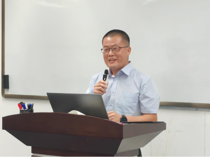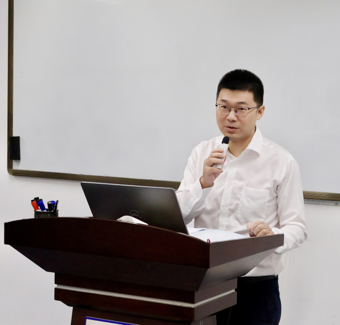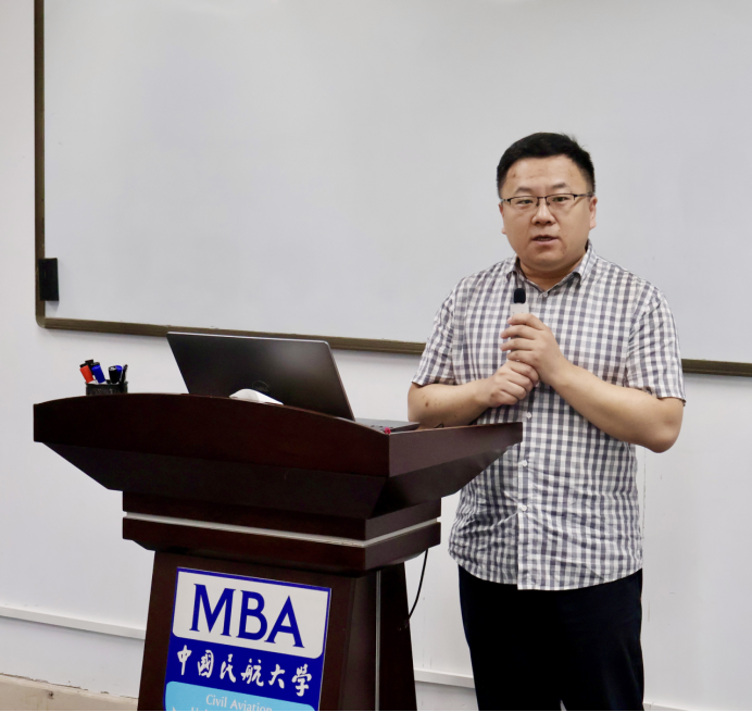 教师代表张翼副教授结合民航产业与经济环境,从“行业趋势+人才需求”双维度出发,为新生指明学习路径。他指出,当前民航产业既面临经济下行、行业内卷的挑战,也迎来低空经济兴起、产业链延伸的机遇,转型关键在于高素质管理人才。张翼老师希望大家明确学习目标,提出了两点期望:一是专业与职业相结合,强调中国民航大学MBA的“民航行业认知”在全国独具特色,依托课程精准对接职业需求;二是认知与实践相结合,希望学员通过学习深化对职业和生活的思考,实现“个人成长与产业升级同频共振”。最后,以“希望大家按时、安全、顺利毕业”作为结语,传递了教师群体的深切关怀。