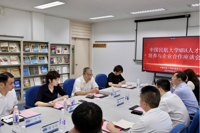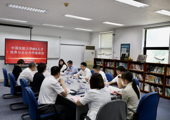 9 月 14 日,中国民航大学MBA人才培养与企业合作座谈会在MBA教育中心116会议室成功召开。厦门航空、商舟航空物流、江西航空、河北航空等企业人力资源部代表,中国民航干部管理学院李桂进教授,以及中国民航大学经济与管理学院(以下简称 “经管学院”)领导班子齐聚一堂,共探民航领域校企协同育人新路径,会议由经管学院党委书记许天牧主持。