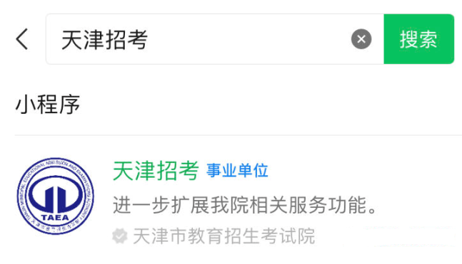 步骤一:在手机微信小程序中搜索“天津招考”。