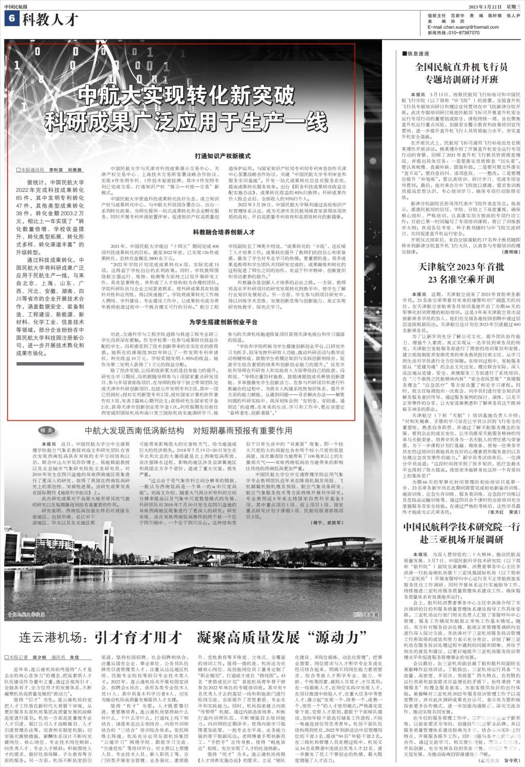 2023年03月22日 《中国民航报》 第006版 科教人才: