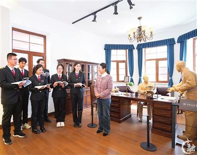 本报讯(记者 姜凝)3月18日,在位于和平区河北路326号的一幢小洋楼中,中国民航大学的一名思政课教师正在为学生讲述与“两航”起义这一历史事件相关的“大思政课”。当天,坐落于此的中国民航大学思政课实践教育基地正式投入使用,首批该校大一新生在此开启了首堂“行走的思政课”。