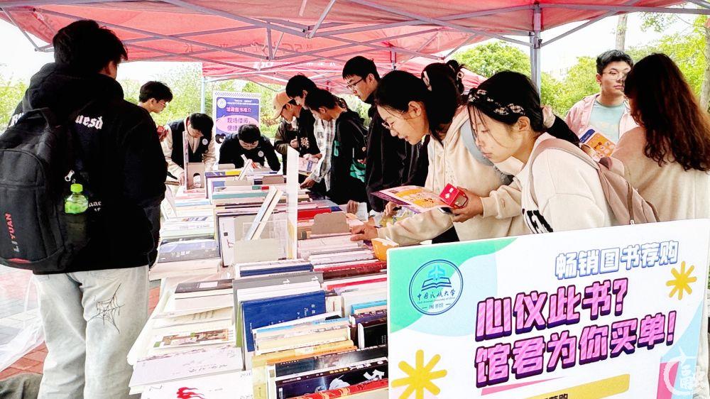 4·23世界读书日,中国民航大学图书馆举办“千禧湖畔邂逅图书馆——快闪书展·打卡集章”活动。学生们现场挑选感兴趣的图书。
