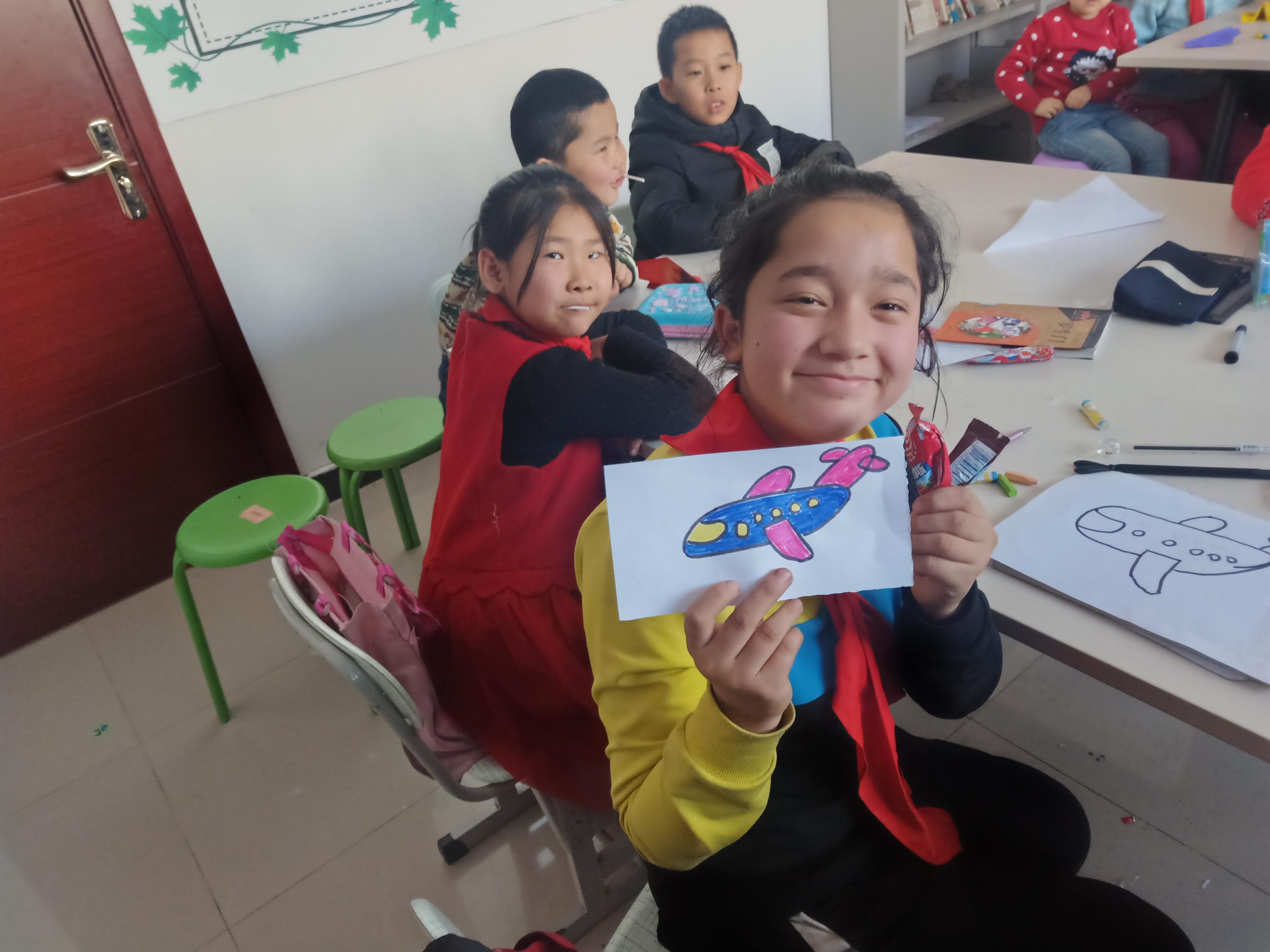 计算机科学与技术学院实践团队来到吉林市龙潭区吉化第一实验小学,带领三年级的学生了解飞机相关知识,并组织开展绘画活动;
