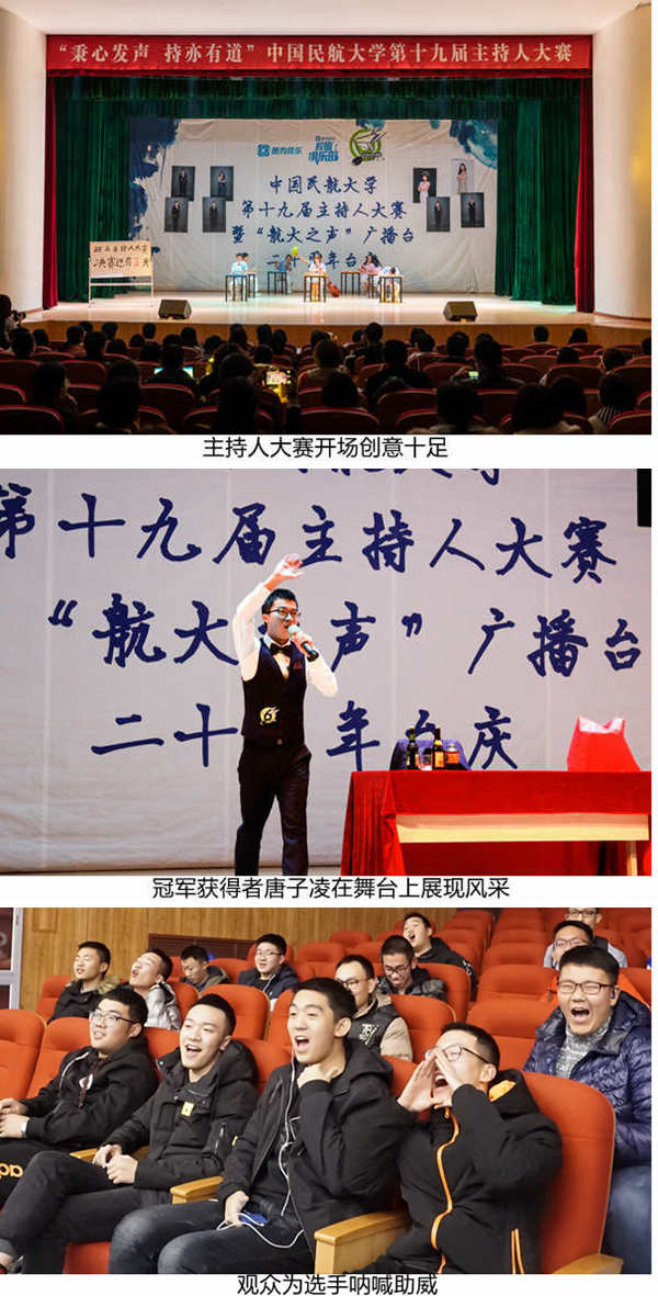 本网讯 11月23日,中国民航大学第19届主持人大赛决赛在北院礼堂成功举办。大赛以“秉心发声,持亦有道”为主题,吸引800余名师生到场观看。6号选手唐子凌获得冠军,1号选手吕维远获得亚军,4号选手王鹏屹获得季军,8号选手雷琨获得“最佳人气奖”。