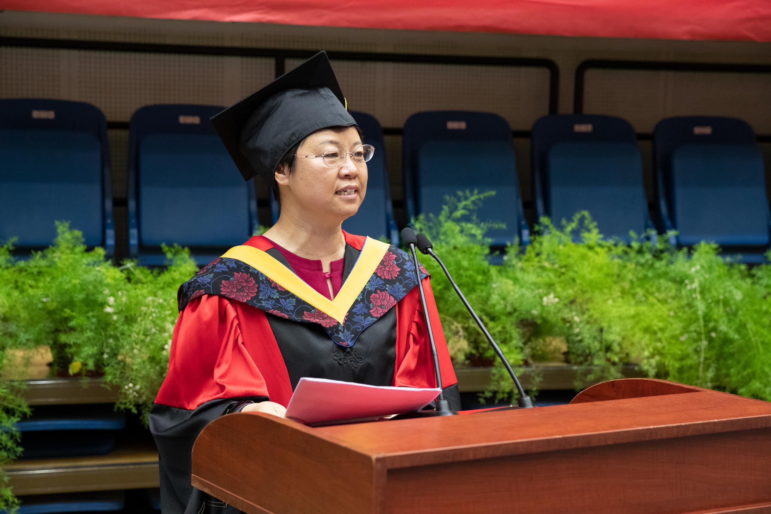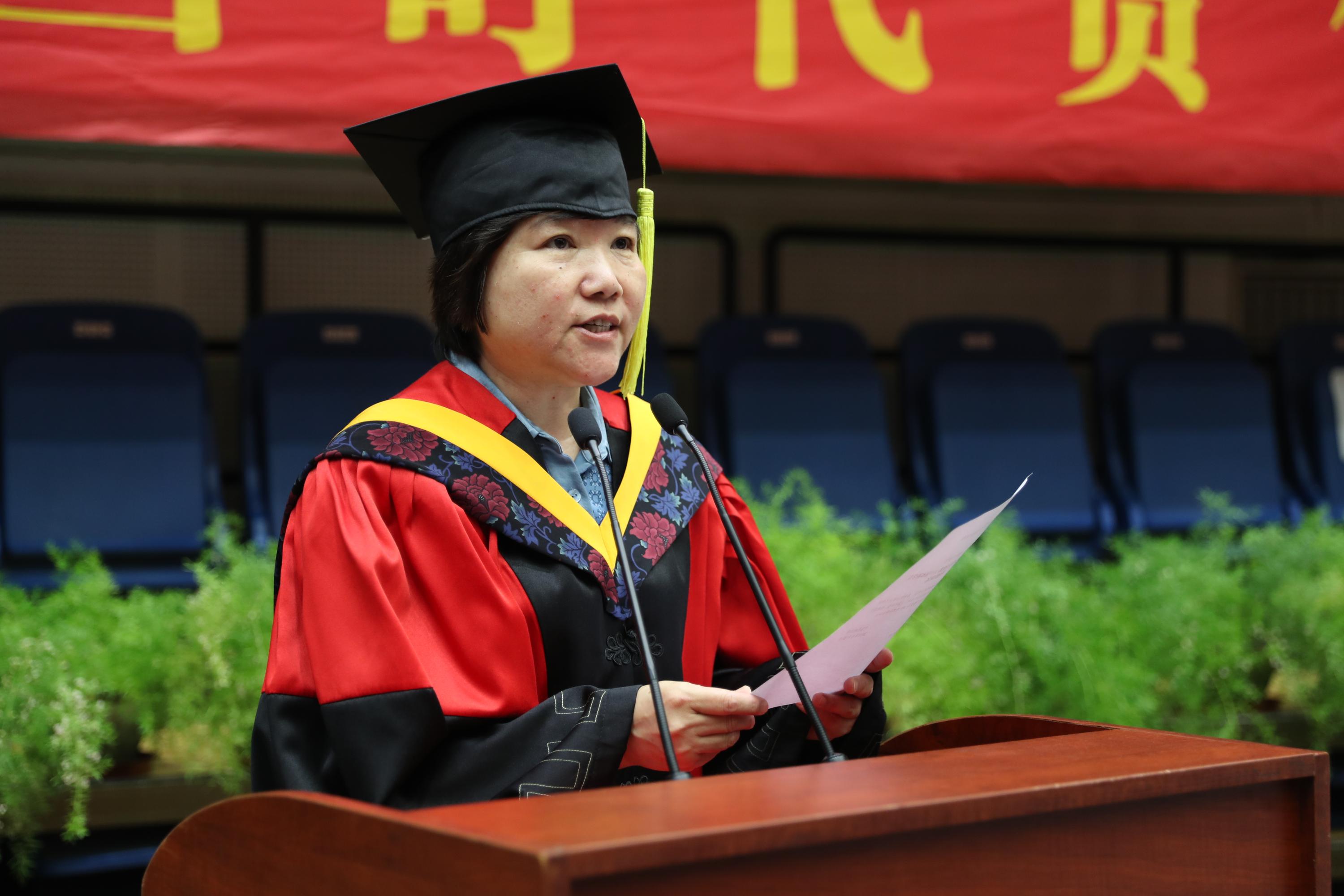 教师代表、外国语学院教授张艳玲希望毕业生把“担当意识”“践行的能力”和“珍惜”带到未来的工作生活中,认真规划自己的人生,并根据自己的成长更新发展规划;瞄准自己的目标,顺风不懈怠、逆风不放弃,不忘初心,坚持践行使命;继续读书、读好书,固本塑魂,明大德,守公德,严私德,成为维护社会公平正义的主力军。
