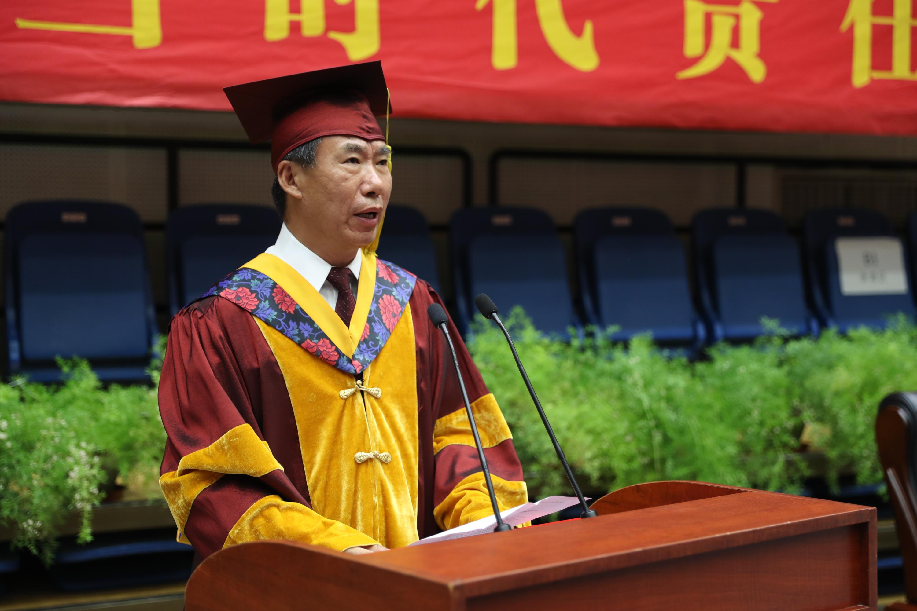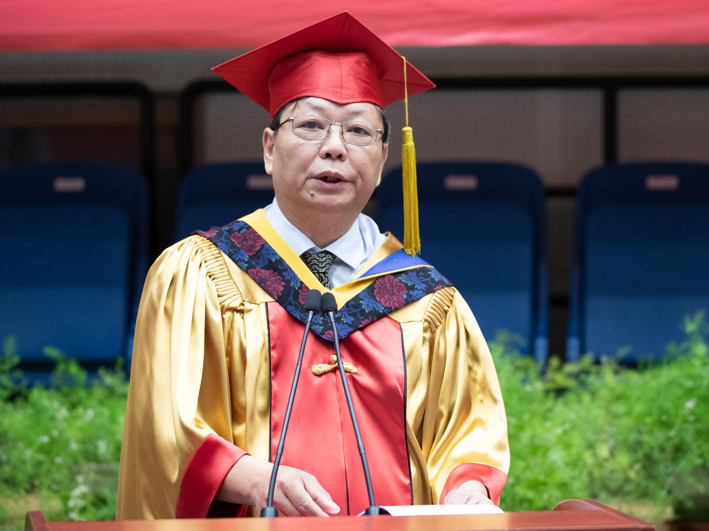 董健康以“厚植爱国情怀 发展自主创新 努力成为新时代中砥砺奋进的有为青年”为题,代表学校全体教职员工向顺利完成学业的同学们表示祝贺。他指出,这个时代是属于奋斗者的时代,奋斗是幸福的,但也是艰辛的、长期的、曲折的,需要付出更为艰巨、更为艰苦的努力,现实是此岸,梦想是彼岸,奋斗是桥梁,只要同学们心怀梦想、坚持奋斗,终将能到达梦想的彼岸。一要厚植爱国情怀,践行民族复兴,争做堪当民族复兴大任的时代新人;二要培育系统能力,练就创新本领,争做肩负科技强国重任的时代新人;三要重视科学伦理,坚持科技向善,争做构建社会命运共同体的时代新人。他寄语毕业生在日后的工作中要继续厚植爱国情怀,练就过硬本领,发展自主创新,坚持科技向善,努力成为新时代中砥砺奋进的有为青年。