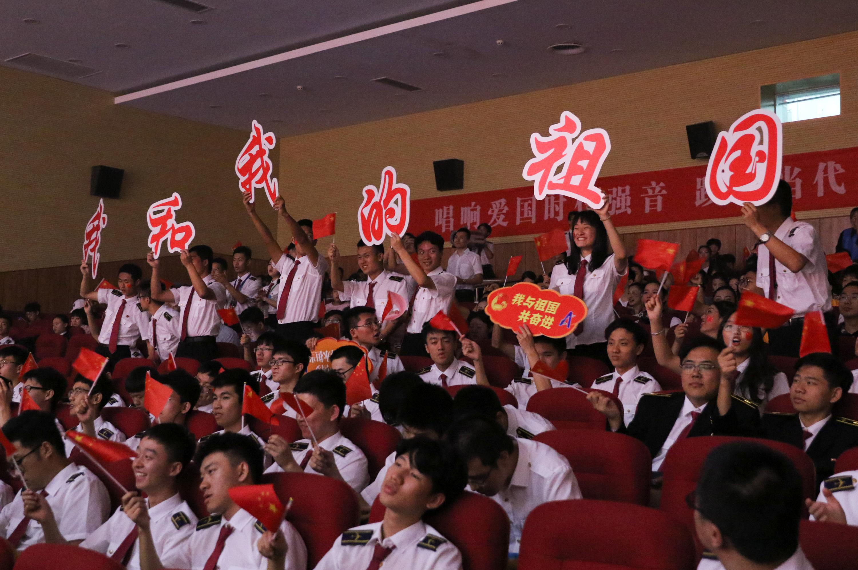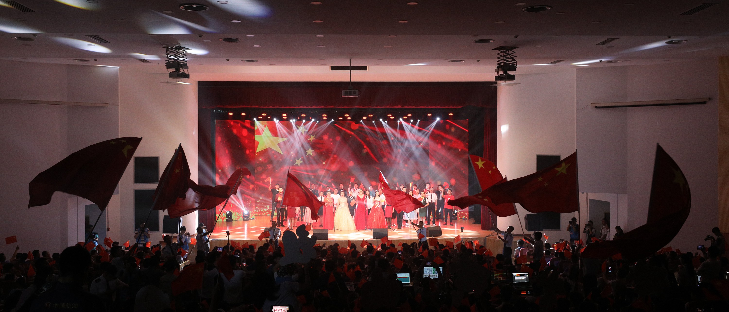 中航大学子挥舞“我的我的祖国”与台上歌手互动