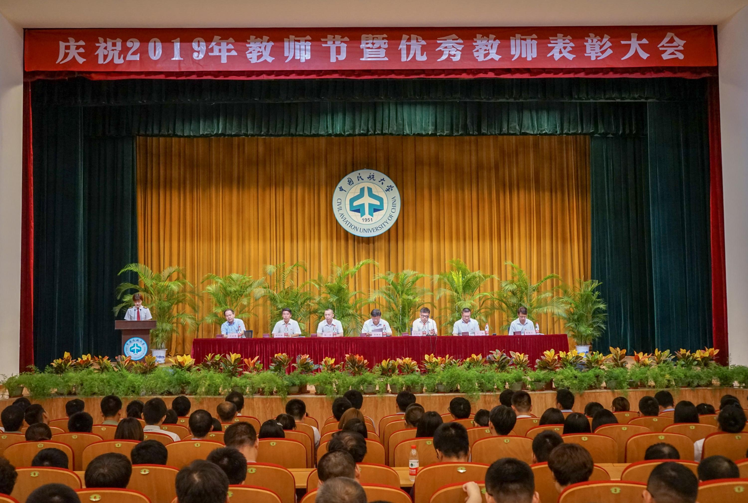 本网讯9月10日下午,中国民航大学庆祝教师节暨优秀教师表彰大会在北区礼堂隆重召开。校长董建康,副校长吕宗平、杨虎、于剑,党委副书记赵洪海,校长助理杨新湦、王志强出席,各学院和相关部门的领导和老师及学生代表参加,近百名新入职教职员工在大会上宣誓。吕宗平主持会议。大会表彰各类大学生创新创业大赛获奖项目的优秀指导教师及优秀教师、优秀教育工作者、先进集体,超过500人次。