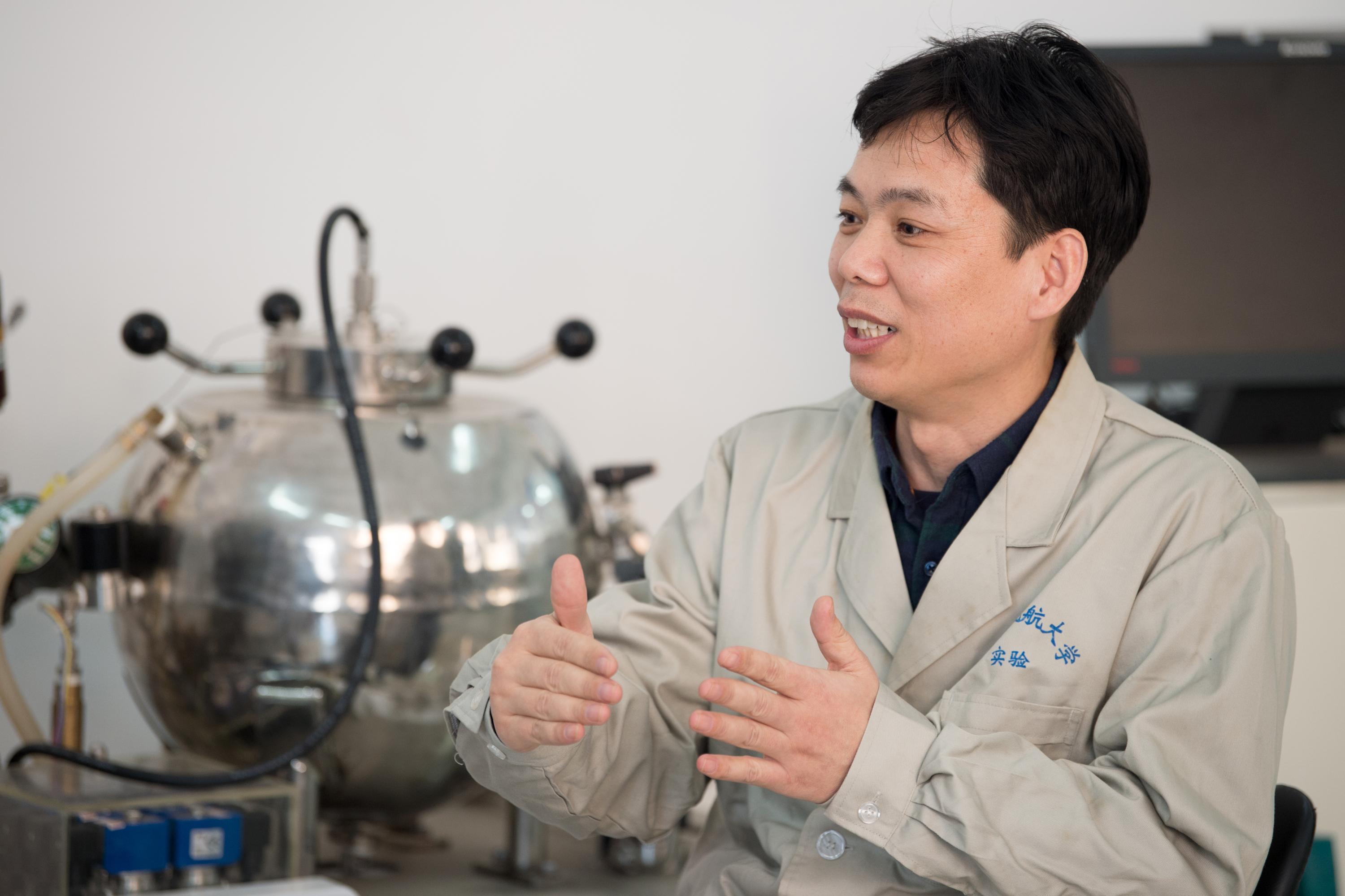 周晓猛与团队成员交流实验细节