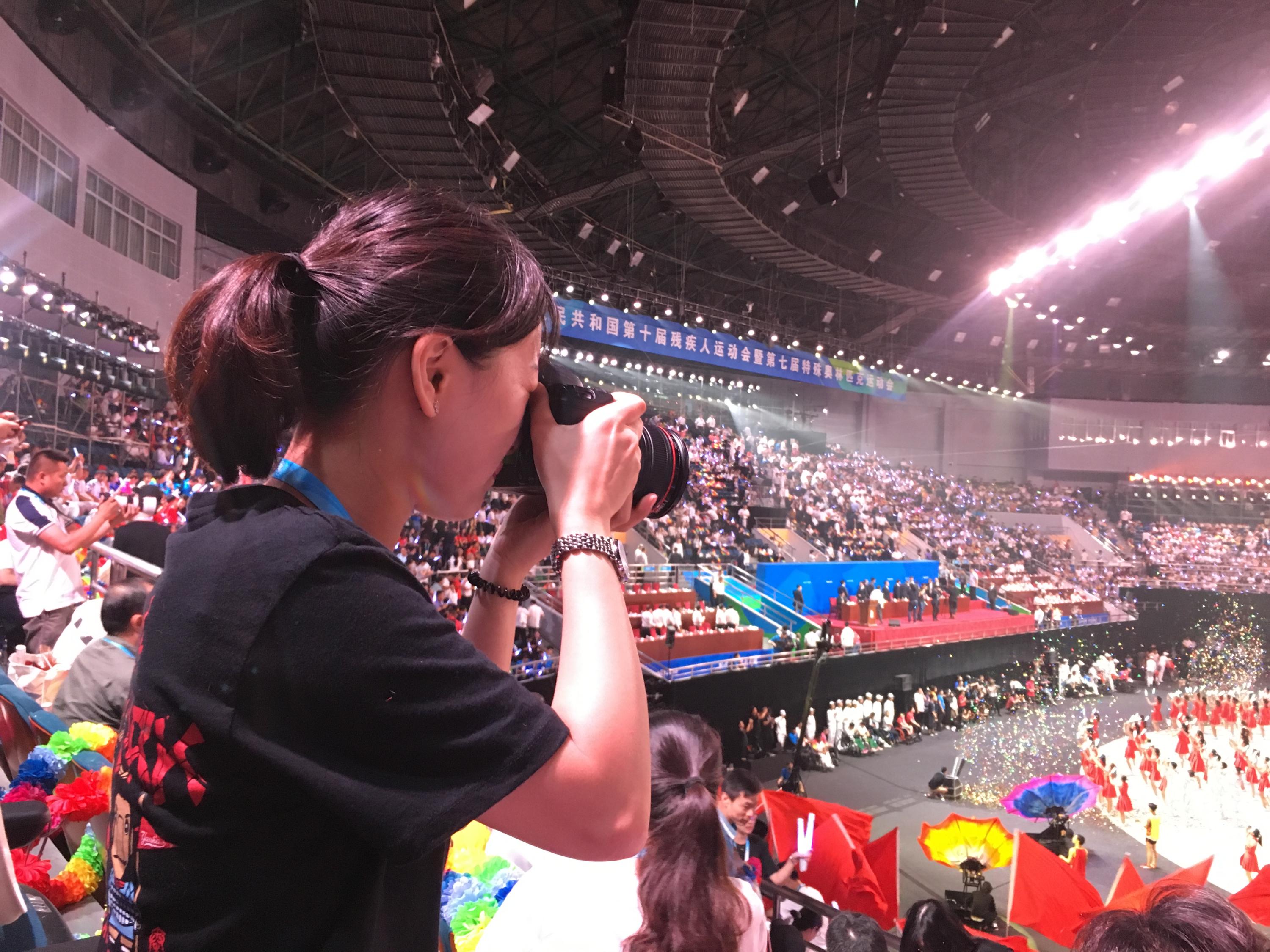 潘致伊在人民网天津频道实习期间报道残运会开幕式