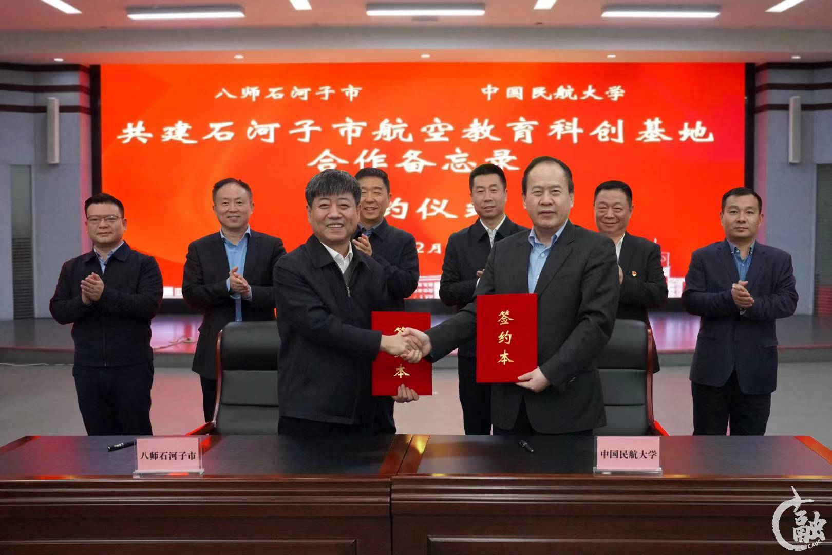 本网讯 12月15日,八师石河子市到中国民航大学参观调研,双方签署共建石河子市航空教育科创基地合作备忘录。八师石河子市党委书记、八师政委鄂宏达,新疆通航党委书记、董事长陈兵,八师石河子市党委副书记、八师副政委宋旭日,中国民航大学党委书记曹胜利,中国民航大学党委副书记王志强,飞行分校党委副书记、校长庆锋出席签约仪式。