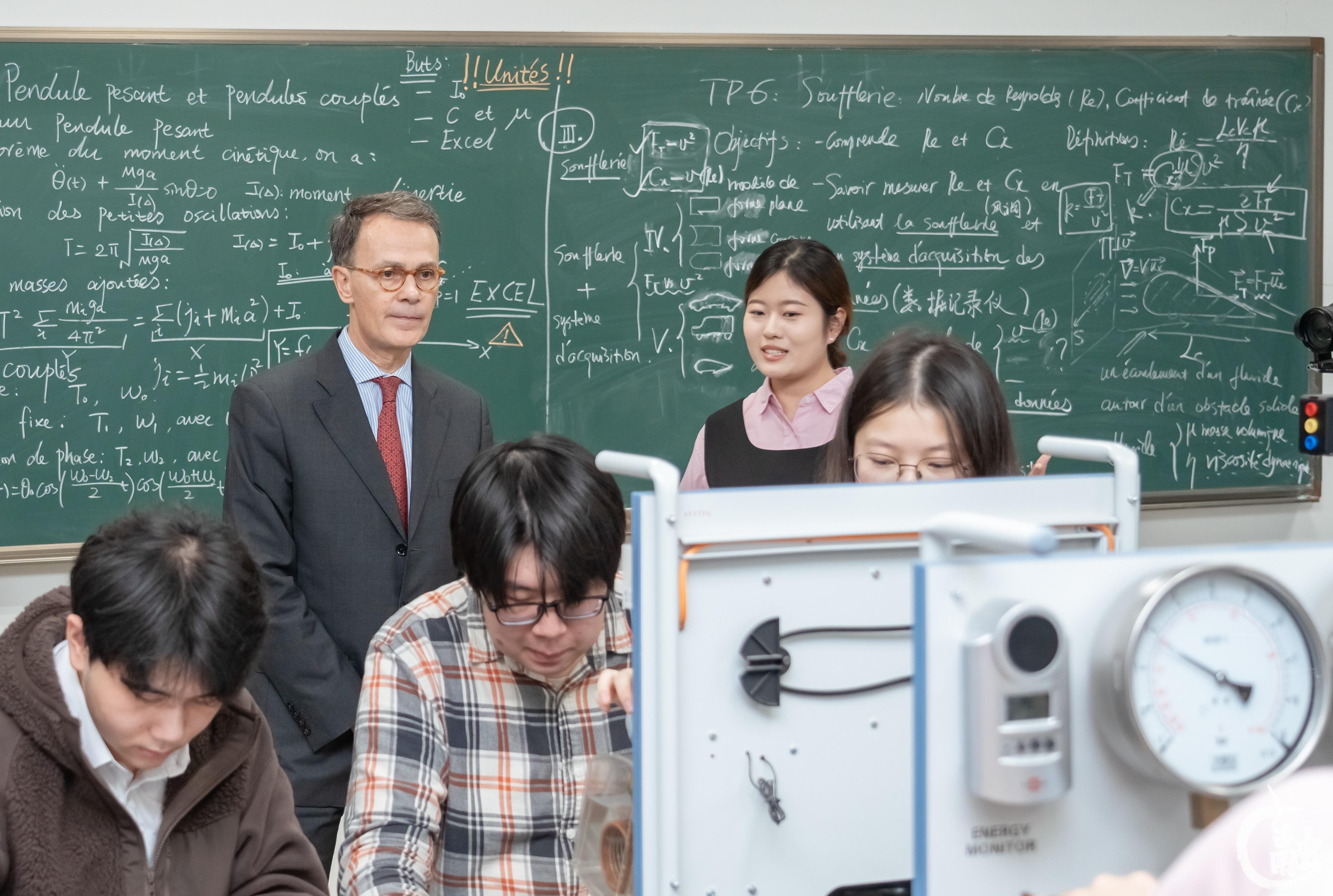 历经18年的发展,中欧学院已积累起雄厚的软硬件办学条件。学院以预科系和工程师系为基础,现有在院专业师资61人(外方常驻教师8人),其中,博士占比82%,留学或访学占比80%,每年法国合作单位派出教授30人。学院以中欧合作航空工程实验中心为支撑,以航空复合材料设计与结构优化等6个创新团队为依托,以民航航空器冲击防护与安全性评估重点实验室等4个校企实验室为平台,建立起深度合作的校企产学研合作教学科研培养体系,以及中外合作、产教融合的渐进式实习实践教学体系,有力支撑学生的创新能力和工程实践能力培养。