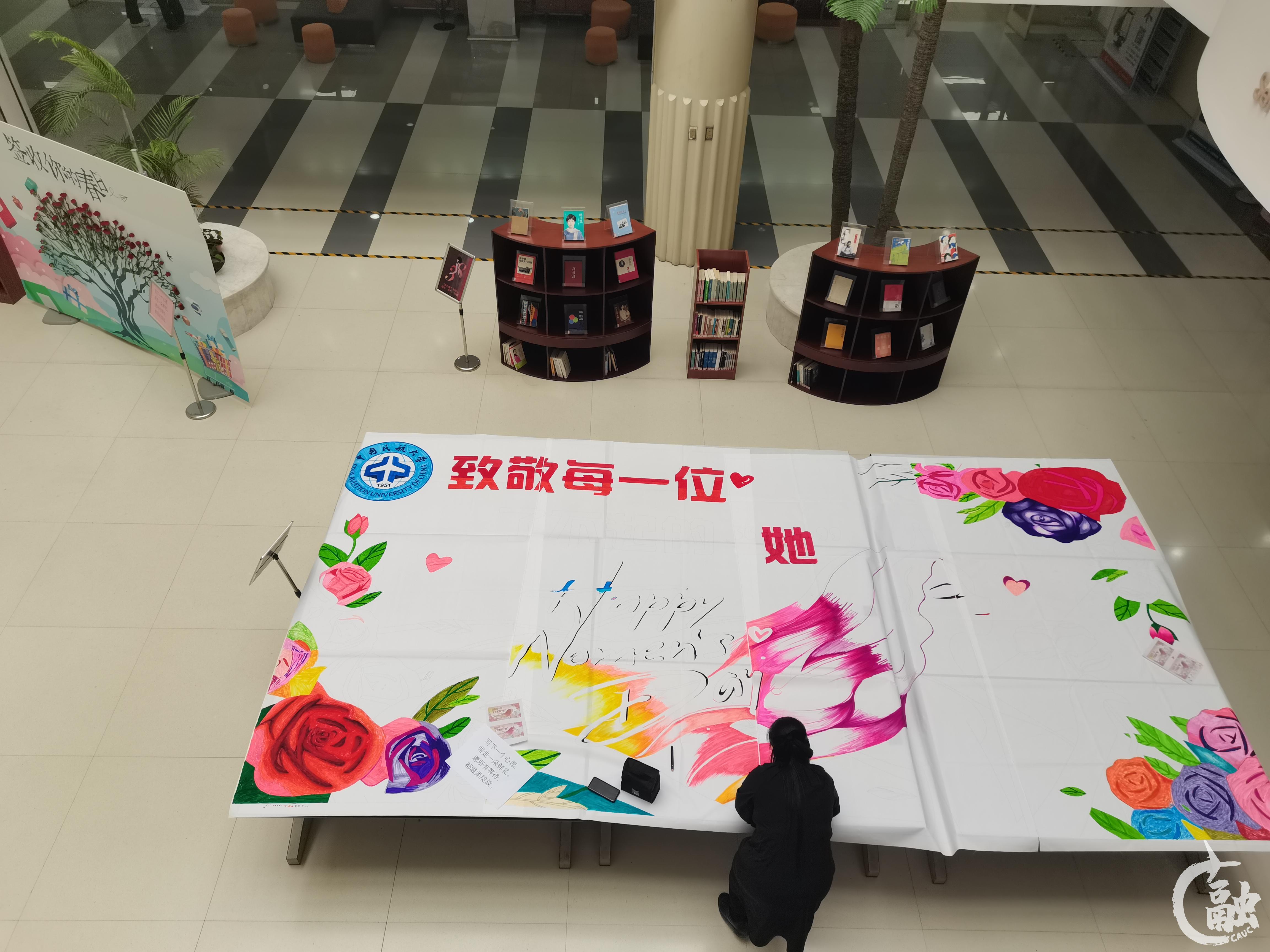 联合图书馆分工会,在双校区举办“她力量”主题书展,设置共绘春日长卷、鲜花许愿墙等互动环节,以书香润心、以艺术传情,致敬每一位新时代女性。