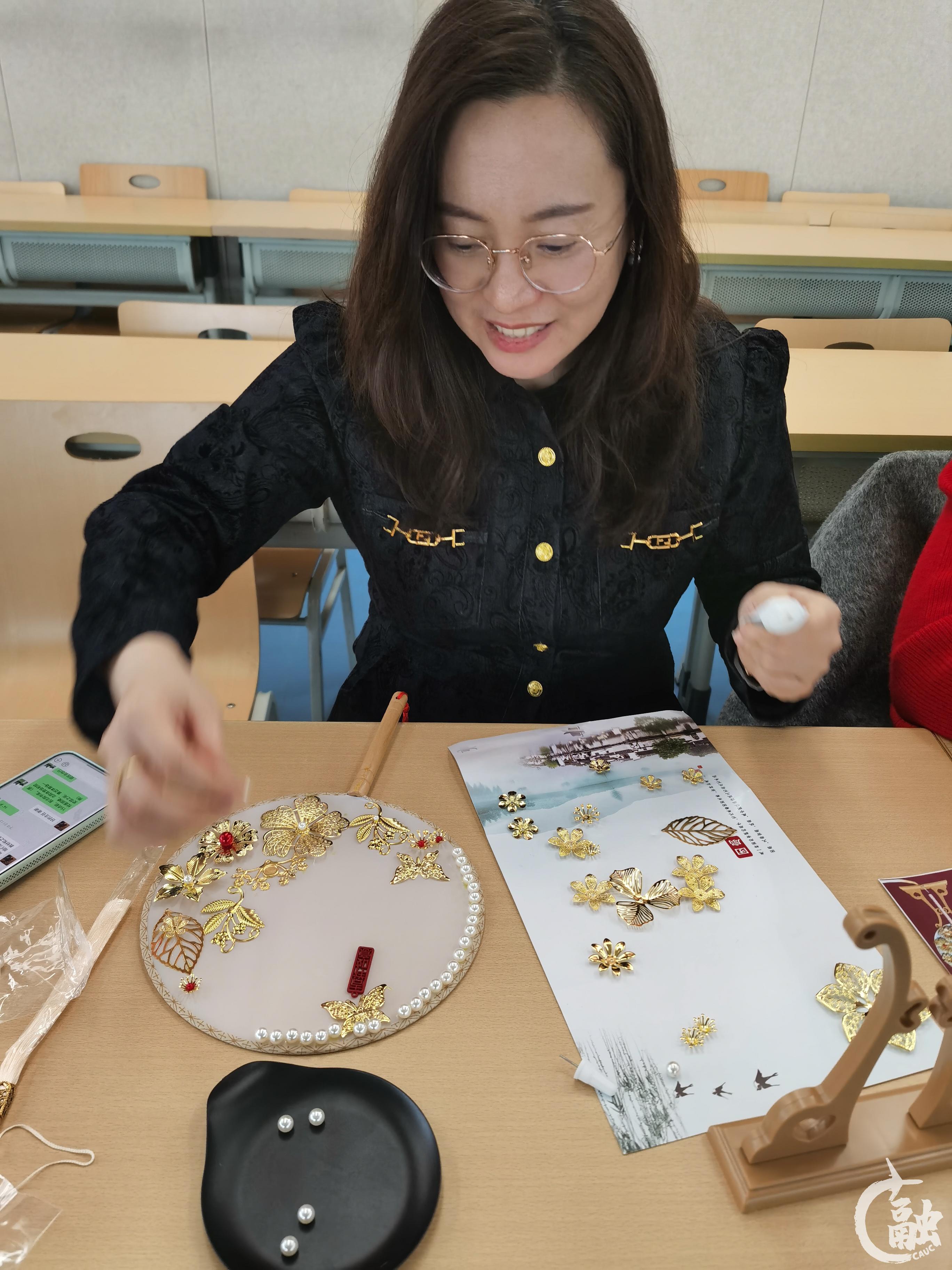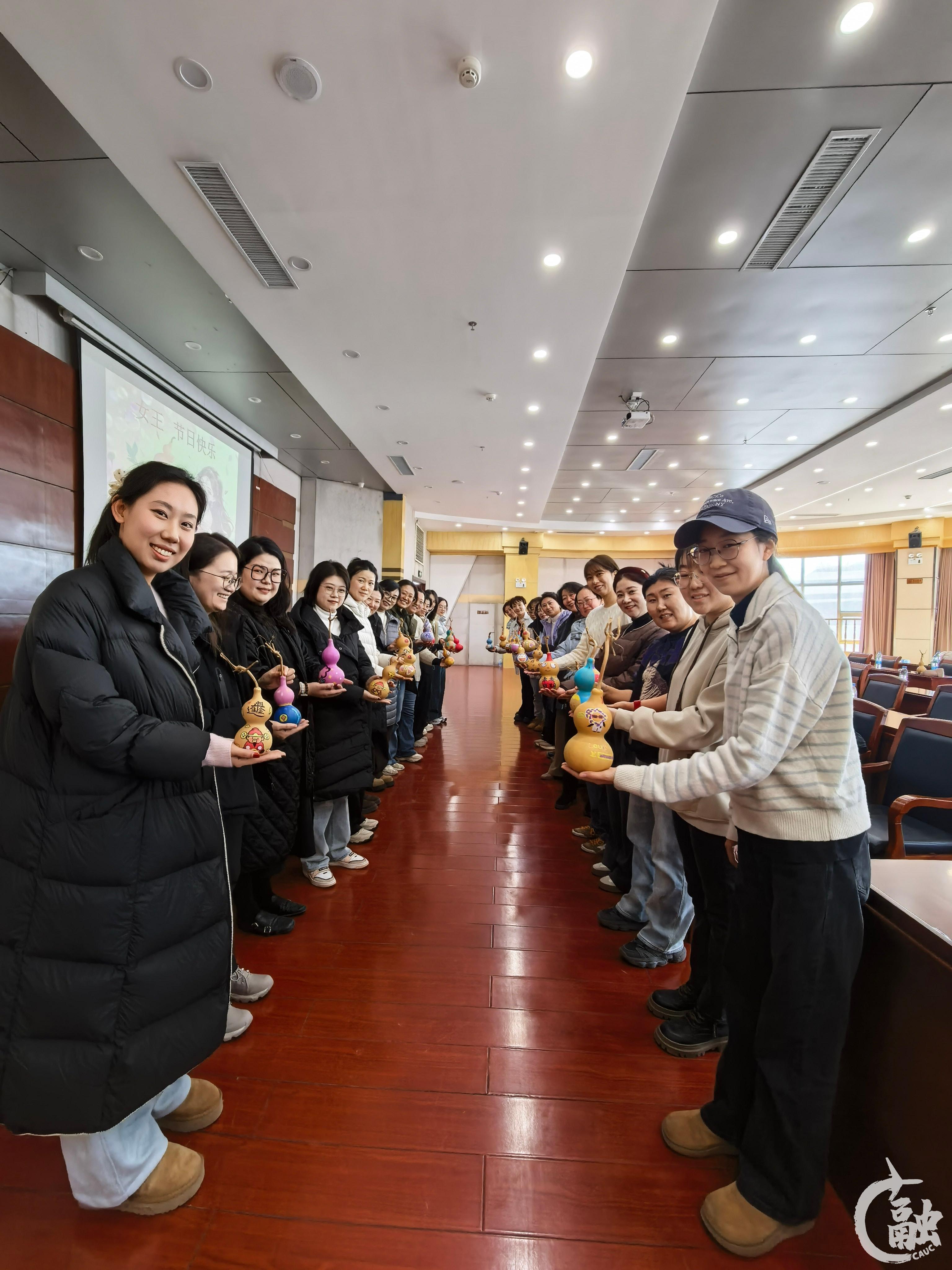 跨部门女教职工欢聚一堂,在专业指导下体验宋锦国风竹节包制作、古风团扇创作、葫芦彩绘等非遗项目,于指尖匠心间感受传统文化魅力。依托多校区联动机制,深入一线开展节日慰问,为女教职工送上诚挚祝福与暖心关怀;通过图书共读、心得交流,让大家共话成长、互诉心声,凝聚同心情谊。
