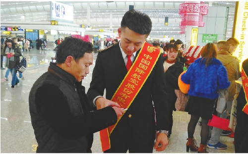 春节假期,中国民航大学30名志愿者在重庆江北机场开展了社会实践活动。他们在航站楼为旅客提供自助值机指导等服务。 陈红叶 刘芳洋 摄影报道
