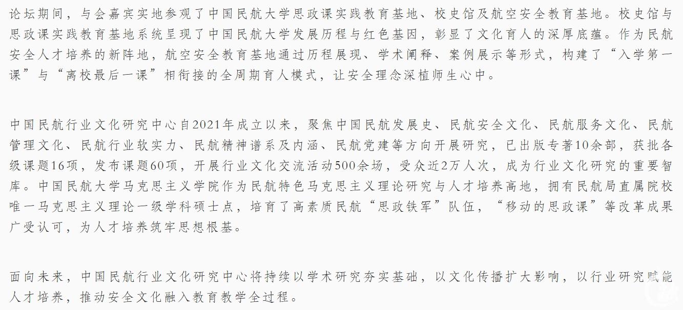 面向未来,中国民航行业文化研究中心将持续以学术研究夯实基础,以文化传播扩大影响,以行业研究赋能人才培养,推动安全文化融入教育教学全过程。