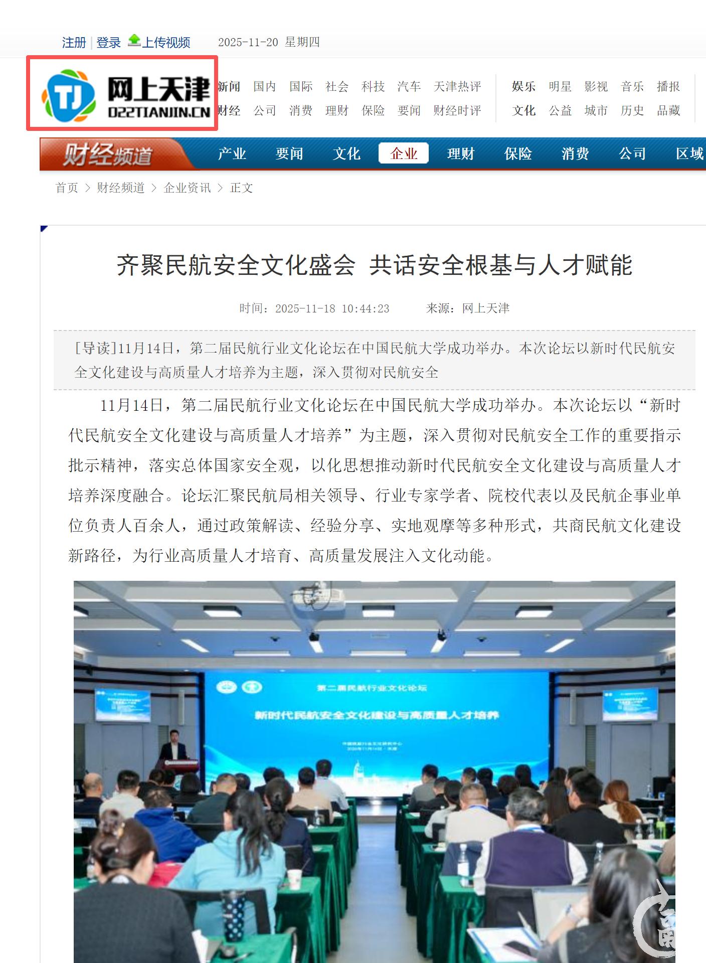 11月14日,第二届民航行业文化论坛在中国民航大学成功举办。本次论坛以“新时代民航安全文化建设与高质量人才培养”为主题,深入贯彻对民航安全工作的重要指示批示精神,落实总体国家安全观,以化思想推动新时代民航安全文化建设与高质量人才培养深度融合。论坛汇聚民航局相关领导、行业专家学者、院校代表以及民航企事业单位负责人百余人,通过政策解读、经验分享、实地观摩等多种形式,共商民航文化建设新路径,为行业高质量人才培育、高质量发展注入文化动能。