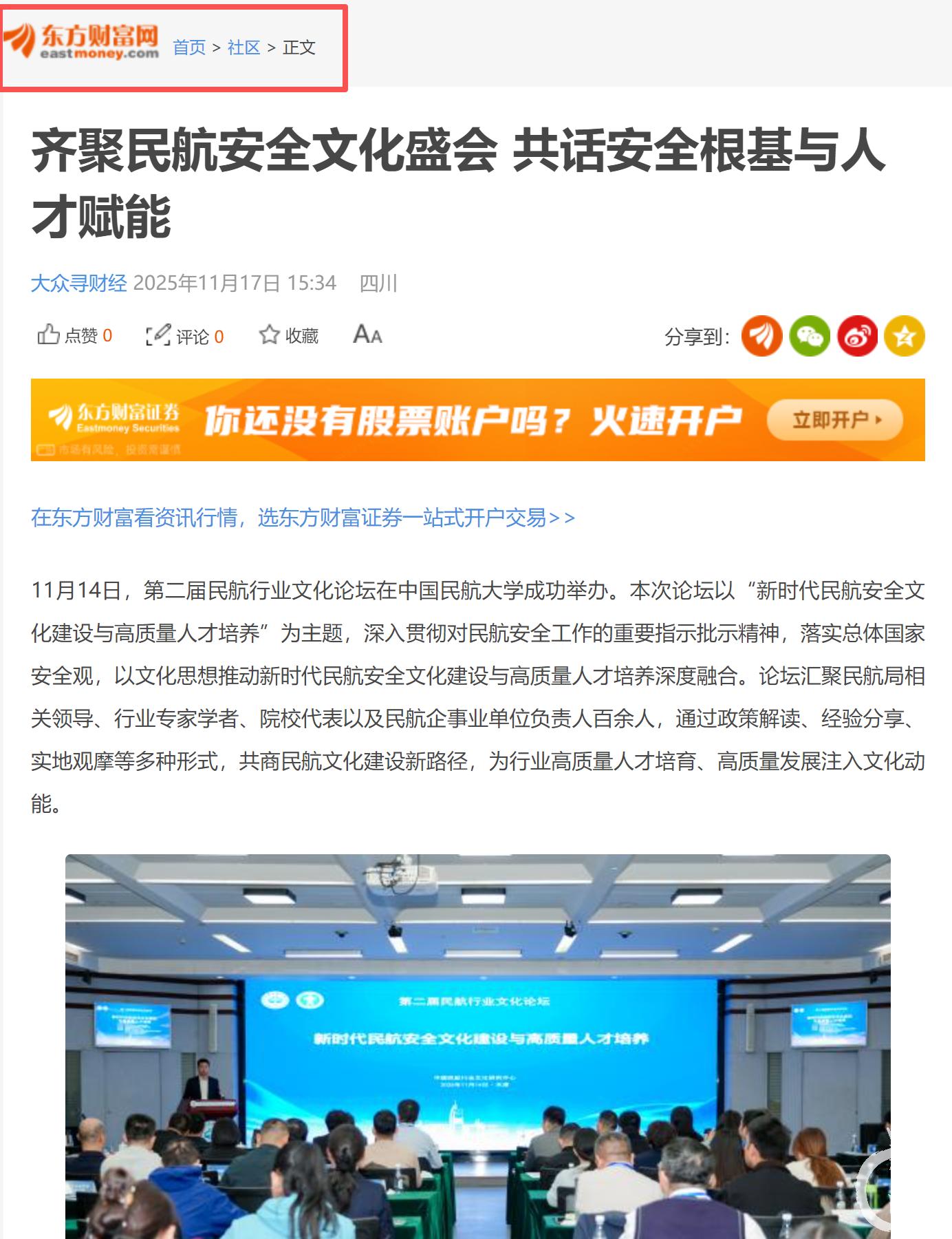 东方财富网:齐聚民航安全文化盛会 共话安全根基与人才赋能