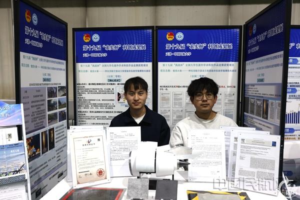获挑战杯全国二等奖的《“微型火墙——一种民用航空器动力装置舱体抗烧穿超薄防火涂层》 团队带着项目作品及专利等在现场展示