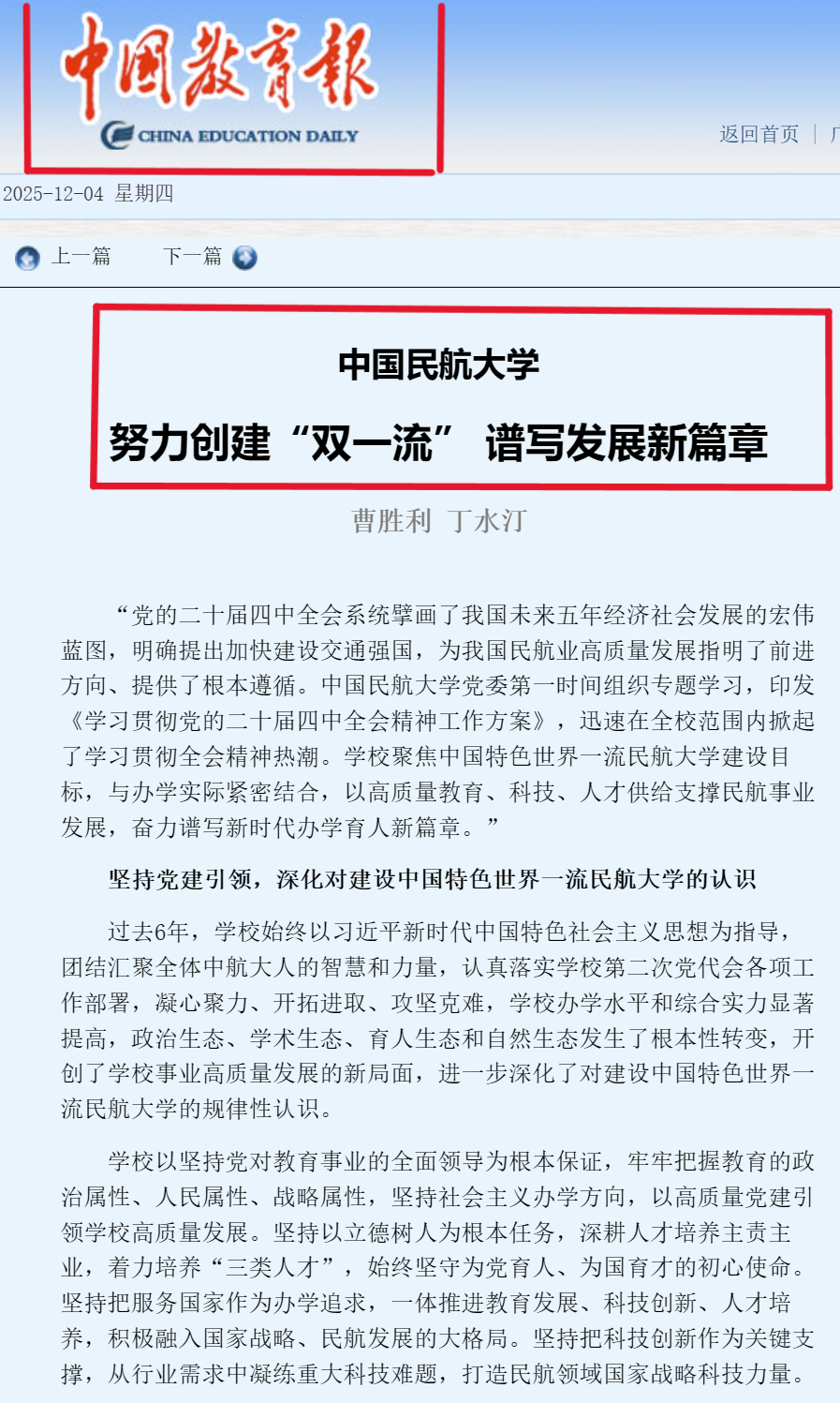 2025年12月04日《中国教育报》: