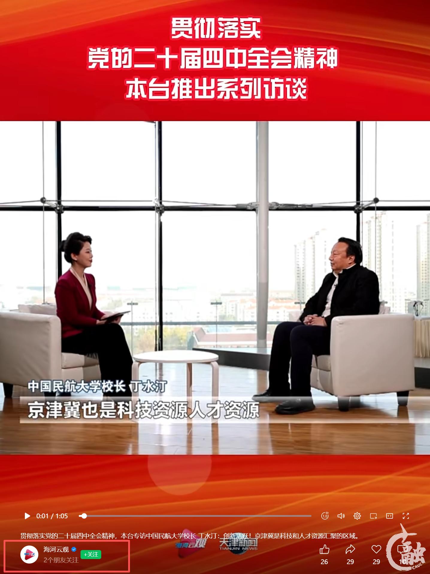 贯彻落实党的二十届四中全会精神,本台专访中国民航大学校长 丁水汀:创新活跃!京津冀是科技和人才资源汇聚的区域。