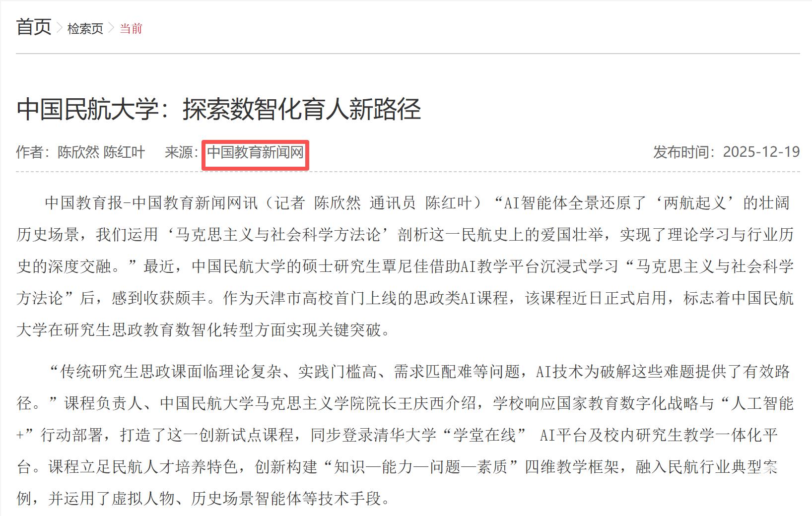 2025年12月19日 中国教育新闻网:
