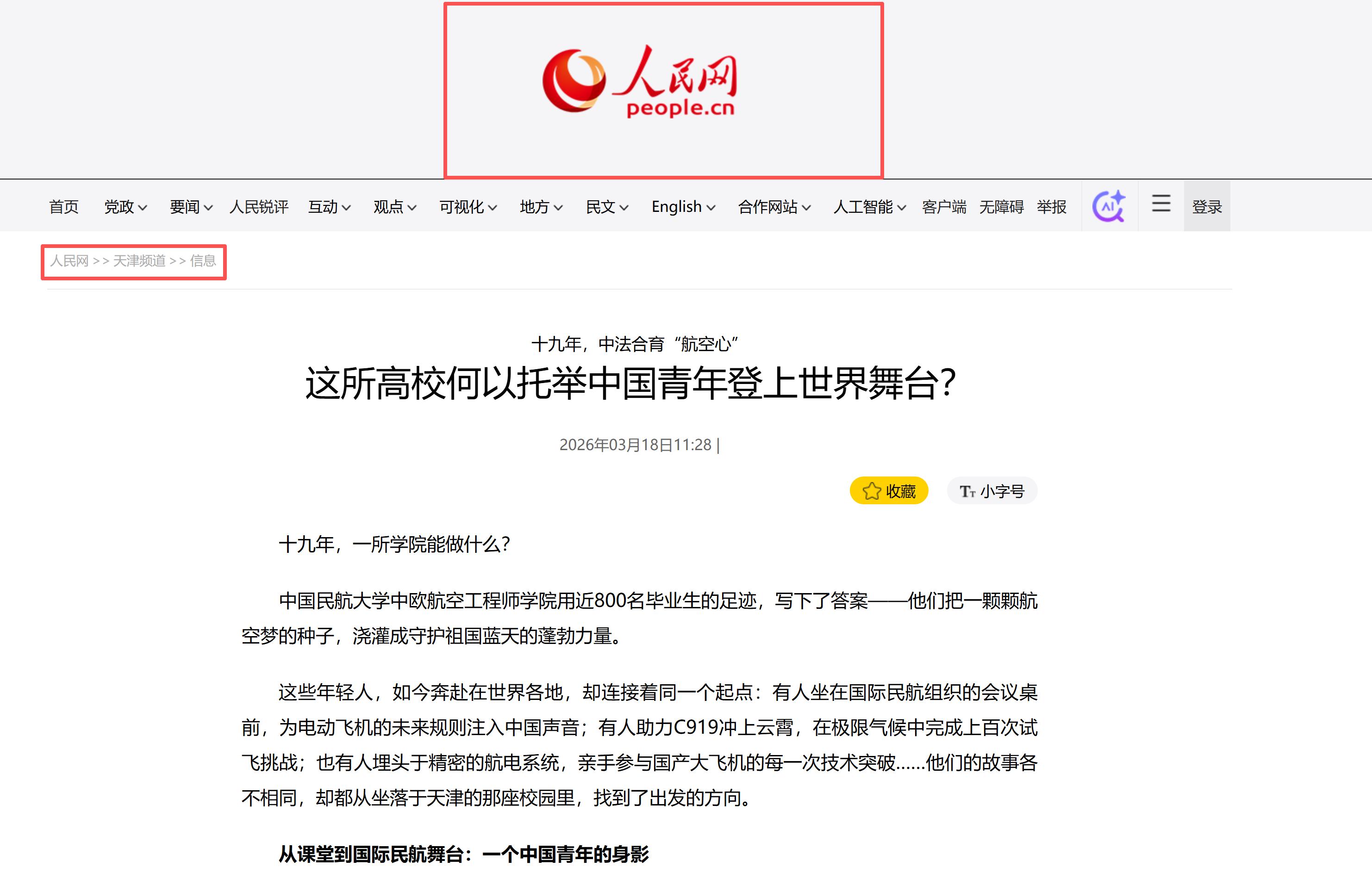 人民网 天津频道:十九年,中法合育“航空心” 中国民航大学何以托举中国青年登上世界舞台?