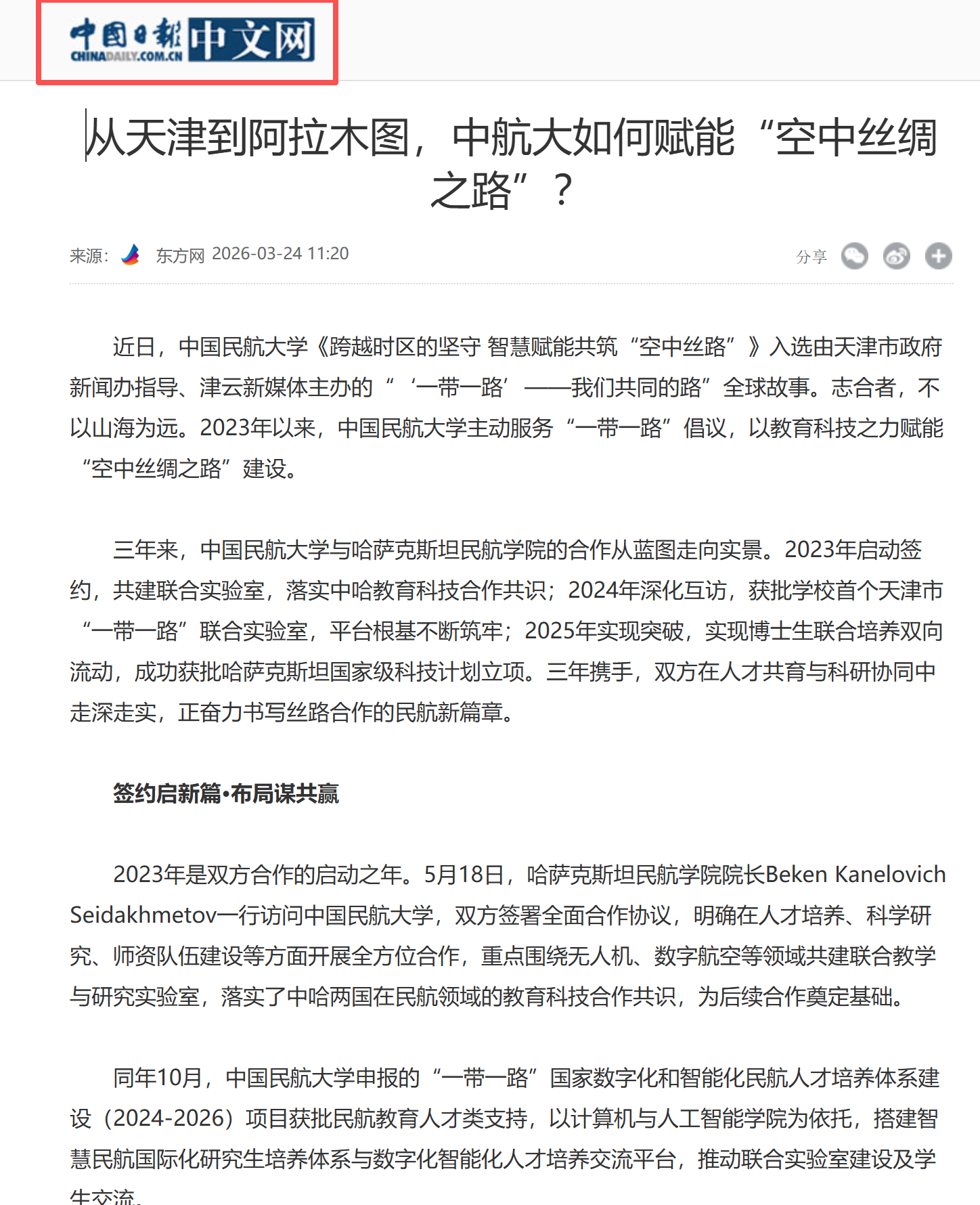 原文链接:从天津到阿拉木图,中航大如何赋能“空中丝绸之路”? - 中国日报网