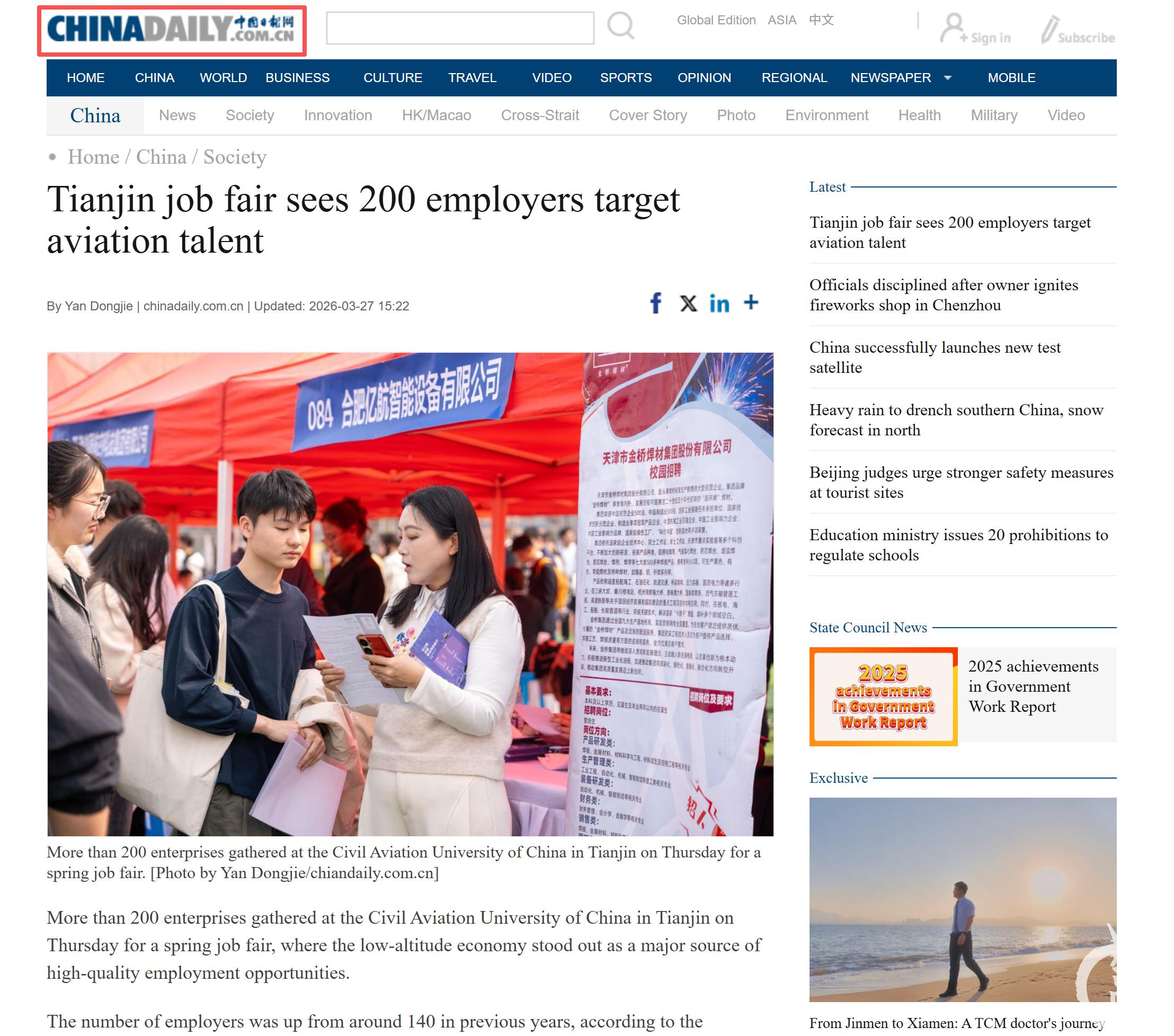 CHINADAILY: Tianjin job fair sees 200 employers target aviation talent
