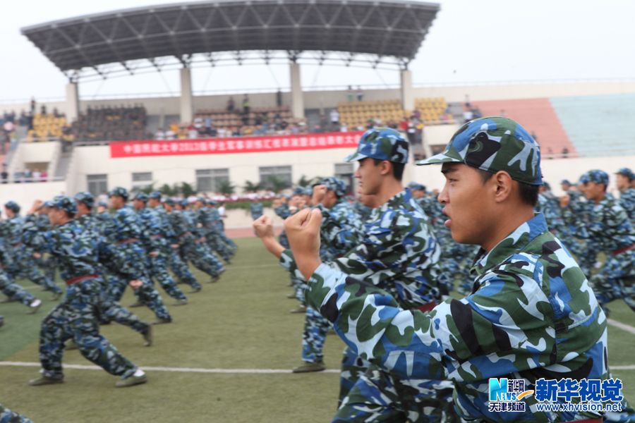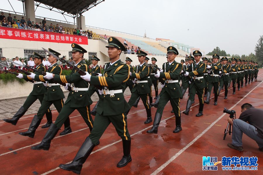 新华网天津频道9月20日电 9月18日,2013级学生军事训练汇报表演暨总结表彰大会在中国民航大学南区体育场隆重举行。军训期间,军训团安排了拔河、板报、游泳、合唱等形式多样、内容丰富的文体活动比赛,在紧张的军事训练之余,丰富了新生的文化生活。