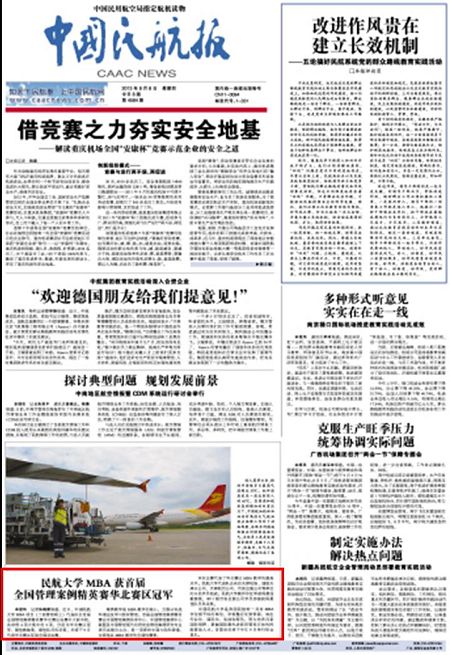 本报讯 记者朱瑞新报道:近日,中国民航大学MBA项目(工商管理硕士)代表队在首届全国管理案例精英赛华北赛区决赛中大获丰收,共夺得4项大奖中的3项,分别为华北赛区冠军、最佳教练奖、最佳队员风采奖,并将于9月代表华北赛区征战全国总决赛。