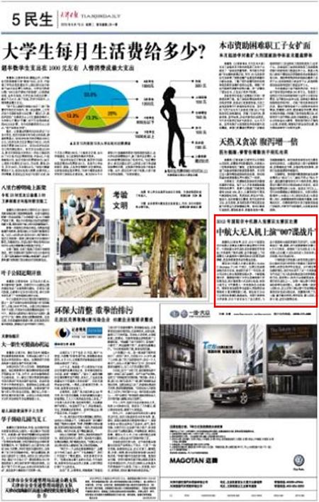 《天津日报》5版:中航大无人机上演“007谍战片”