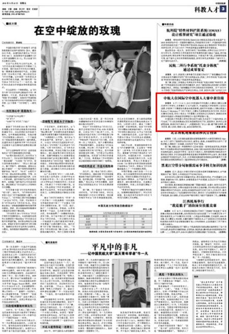 本报讯 8月1日~4日,2013年度国际空中机器人大赛亚太赛区比赛在清华大学举行。在参赛的12支代表队中,中国民航大学取得第2名的好成绩,并获得了大赛颁发的最佳导航控制奖。国际空中机器人大赛由美国人Robert C Michelson于1991年创立,比赛以完成挑战性任务为目标,而此次比赛的任务是:利用小型自主飞行器潜入反动组织办公机构内,搜索各房间获取存有威胁人类秘密活动情报的U盘并释放假U盘。