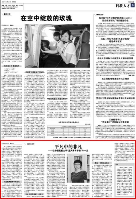 《中国民航报》3版:平凡中的非凡——记中国民航大学“蓝天青年学者”牛一凡