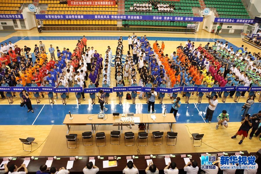 新华网天津频道7月9日电 7月8日上午,第三届全国民航职工篮球赛开幕式在中国民航大学体育馆主馆举行。来自民航系统各企事业单位以及台湾中华航空公司的32个单位共45支队伍、462人参加比赛。