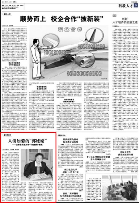 《中国民航报》3版:人淡如菊的“郭姥姥”——记中国民航大学“十佳教师”郭英