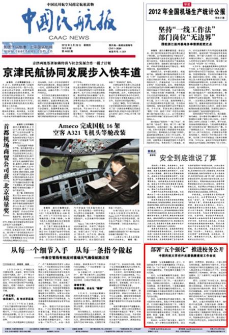 2013年3月28日《中国民航报》头版: