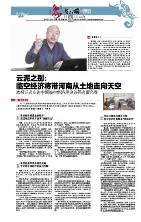 《大河报》11版:专访中国临空经济理论首倡者曹允春