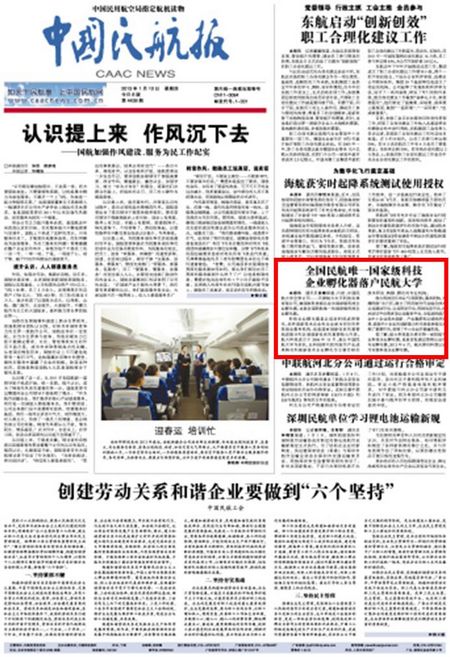 《中国民航报》头版:全国民航唯一国家级科技企业孵化器落户民航大学