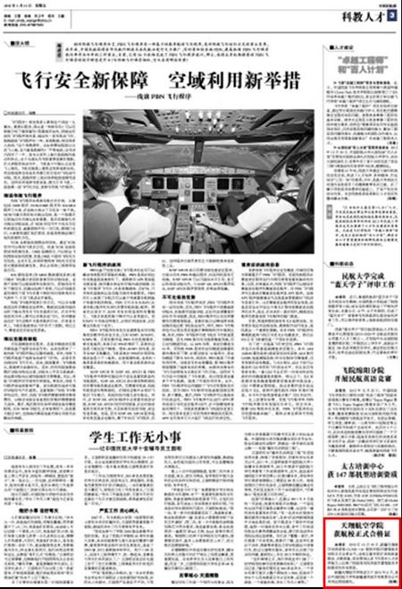 《中国民航报》3版:天翔航空学院获航校正式合格证