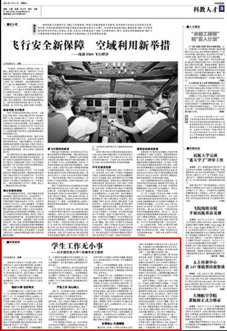 《中国民航报》3版:学生工作无小事——记中国民航大学十佳辅导员王国明