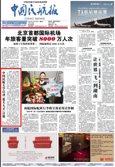 《中国民航报》头版:中国民航大学启动“蓝天人才”计划