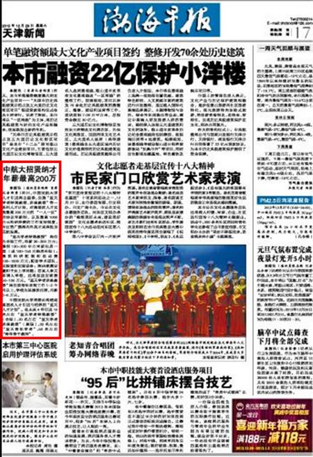 中航大招贤纳才年薪最高200万