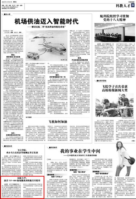 本报讯 通讯员孙重凯报道:日前,中国民航大学乘务学院购买的波音737-800陆地撤离训练舱和空客A320舱门训练器正式交付使用。此次交付的设备完全符合中国民航局的训练标准,是目前国内最先进的客舱训练设备,可以进行客舱安全的撤离训练、灭火程序训练、舱门训练、内话通信训练等。以往,只有航空公司培训中心才配备类似设备,而国内也只有两家院校配备了此类专业训练设施。