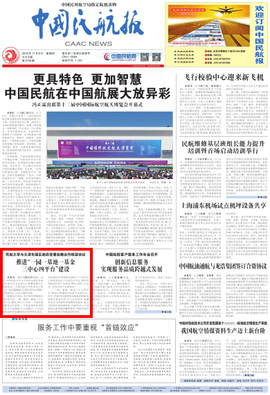 2018年11月8日《中国民航报》头版: