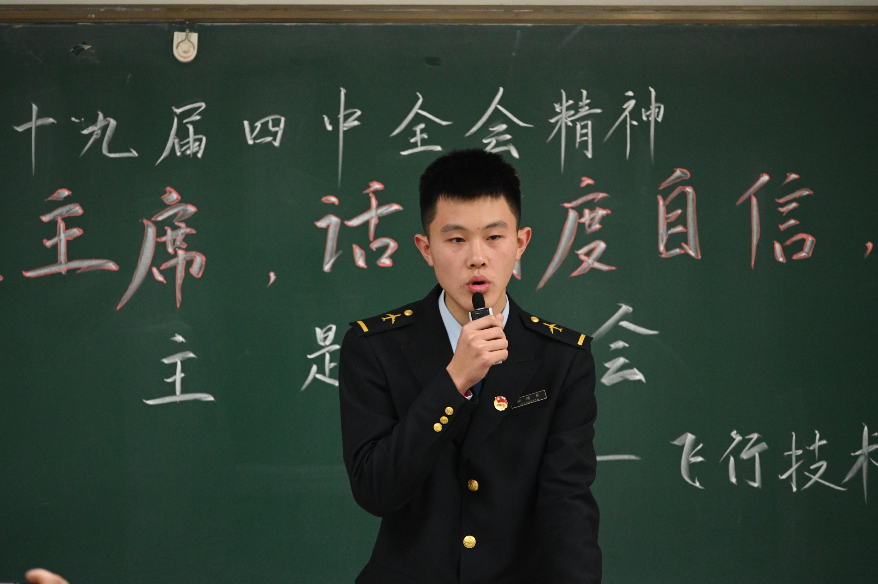 191345B班学生周敬淇说:“通过主题班会活动,我对中国共产党的发展史有了更深刻的认识,也让我知道只有经过种种历练,一个人才能够成长,才能具备实现梦想的各种能力,我要继续努力成长为一名政治素养、专业技能过硬的飞行员,圆梦蓝天。”