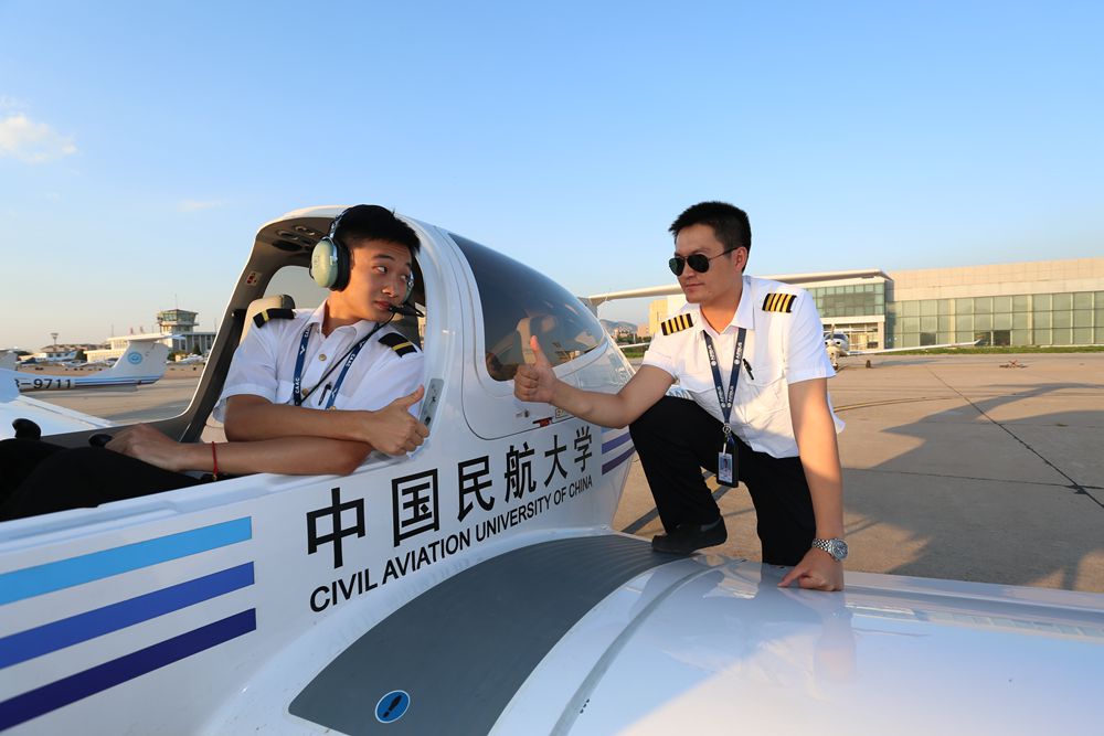 旁边,一位帅气的飞行教员正溢满祝福的笑容,竖起大拇指鼓励他起飞。这位帅气的飞行教员,就是朝阳飞行学院飞行二大队的队长章麒麟。