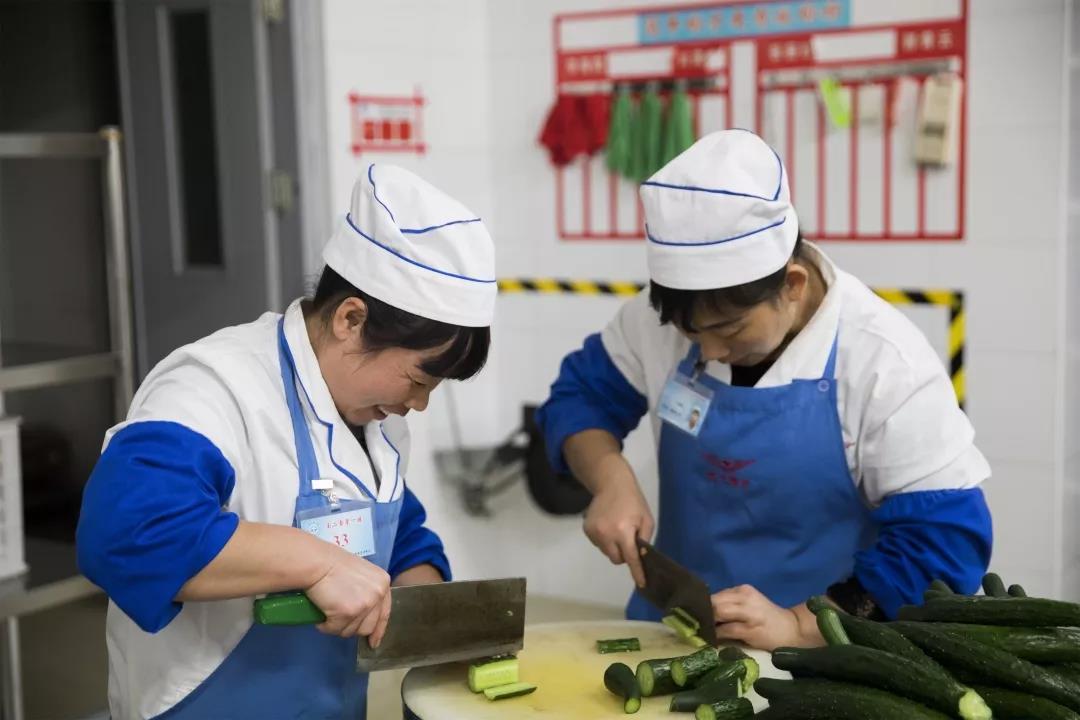 在陈齐东负责的食堂,每道菜的盘子旁边都会有做菜师傅的名字,因为做菜不仅只是一个工作,做出的成果更是属于师傅们的作品。每周一的例会上,陈齐东会和大家讨论新出的菜品,保证最多一个礼拜内必须出一道应季的新菜品。今天如果是煮鸡腿,明天就换成炸鸡腿,在应有的范围内换着花样做菜,这大概是他几十年来毫不厌烦的秘诀。在家里,陈齐东也是做饭的一把好手。“一般在家也都是我下厨,我儿子只要一尝味道说‘这是我爸做的’。”说起这个,陈齐东乐开了花。