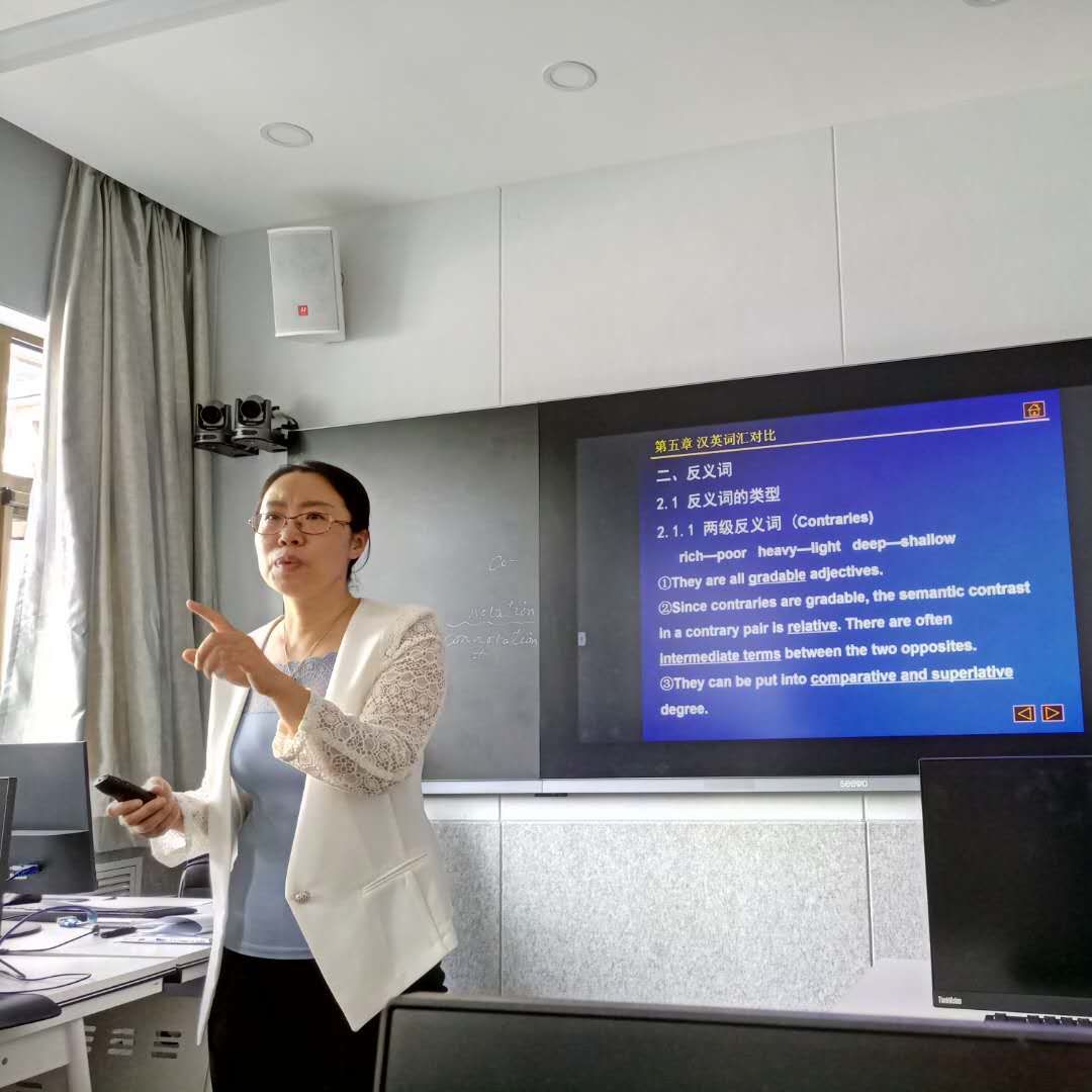 理性和语言是人类交往过程中的纽带。教师的角色不仅仅是传道授业解惑,更要做好学生的引路人。侯静华老师谈及专业时表示,英语专业学生有语言作为工具,面对的世界窗口更加广阔,能够看到更加丰富多彩的世界,但是往往缺乏理科生的条理性、逻辑性以及已被列入“国标”的思辨性。她对英文教学层层剖析:“根据专业教学需求,我会先把所有知识自己整理清楚,形成一个教学纲要。每讲一章前都会把要讲的大纲很清楚地呈现给学生,具体的内容再想方设法展开,吸引大家学习,学习完之后再回到大纲上去。讲究读书从薄到厚,再从厚到薄,由此培养学生的思辨性、条理性。”